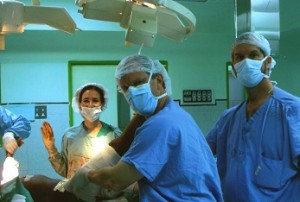 Dr. Blanchet operating with Dr. Rob Brown and her husband, Dr. Kent Rollins of Virignia Urology. Virginia Urology is currently implementing the Vincentian Prostate Cancer Initative.
