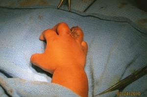 After separation of congenitally fused fingers